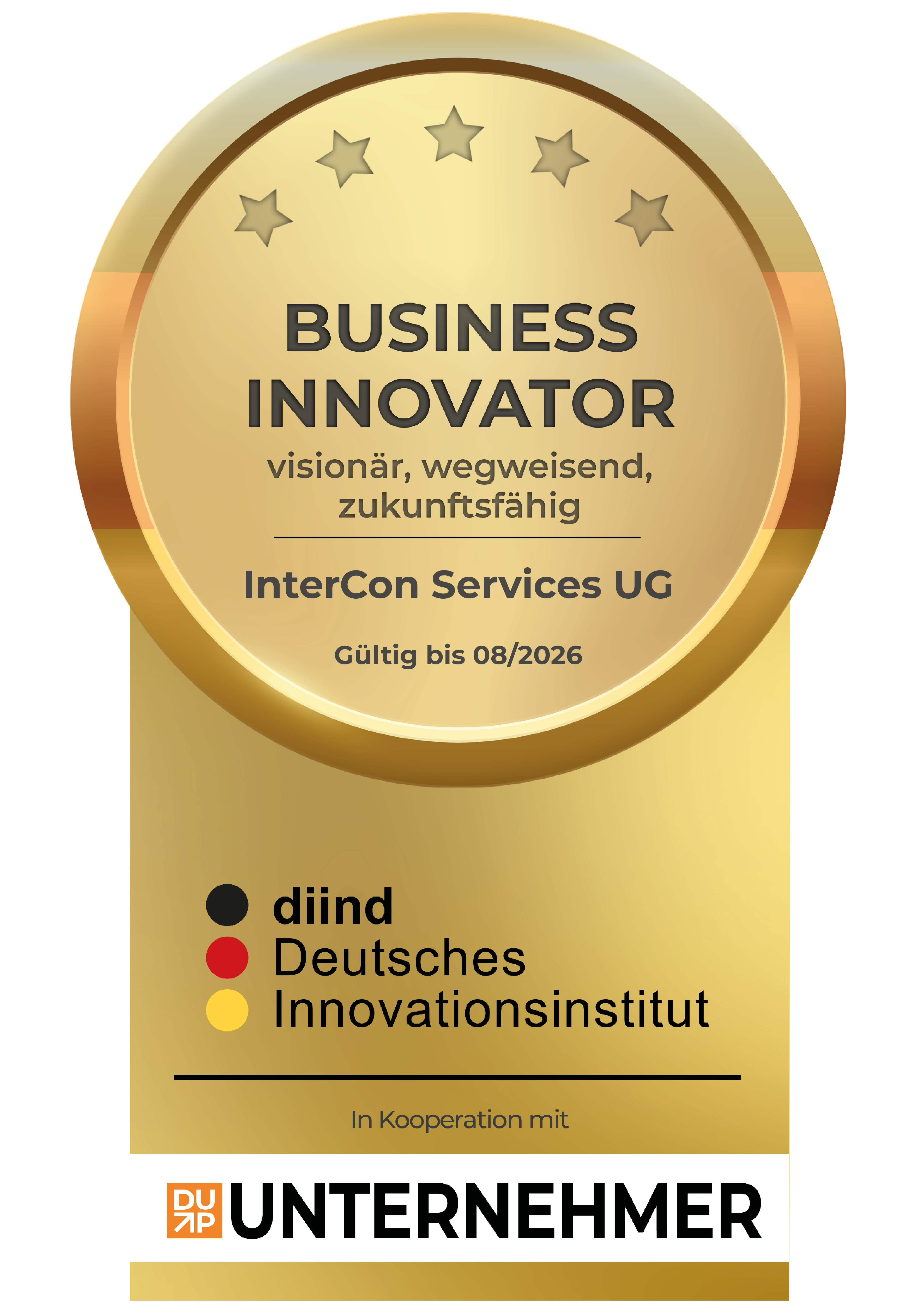 نحن فخورون بأننا، كشركة ناشئة، حصلنا في عام 2025 على جائزة ”Business Innovator“ من diind وجائزة ”von Kunden empfohlen“ (موصى بها من قبل العملاء) من DISQ-Trust بفضل مشاريعنا وعملياتنا التي تمت بتوصية من عملائنا. وهذا يحفزنا كرواد أعمال على مواصلة التطور والمضي قدمًا في تطوير شركتنا لعملائنا بمزيد من الالتزام.